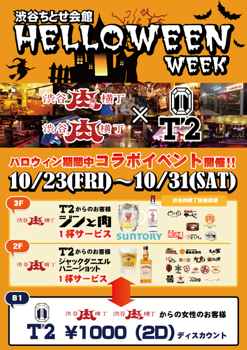 弊社にて管理コンサルタント業務を行う「渋谷肉横丁」にて、ハロウィンウィークコラボ企画が開催されます。